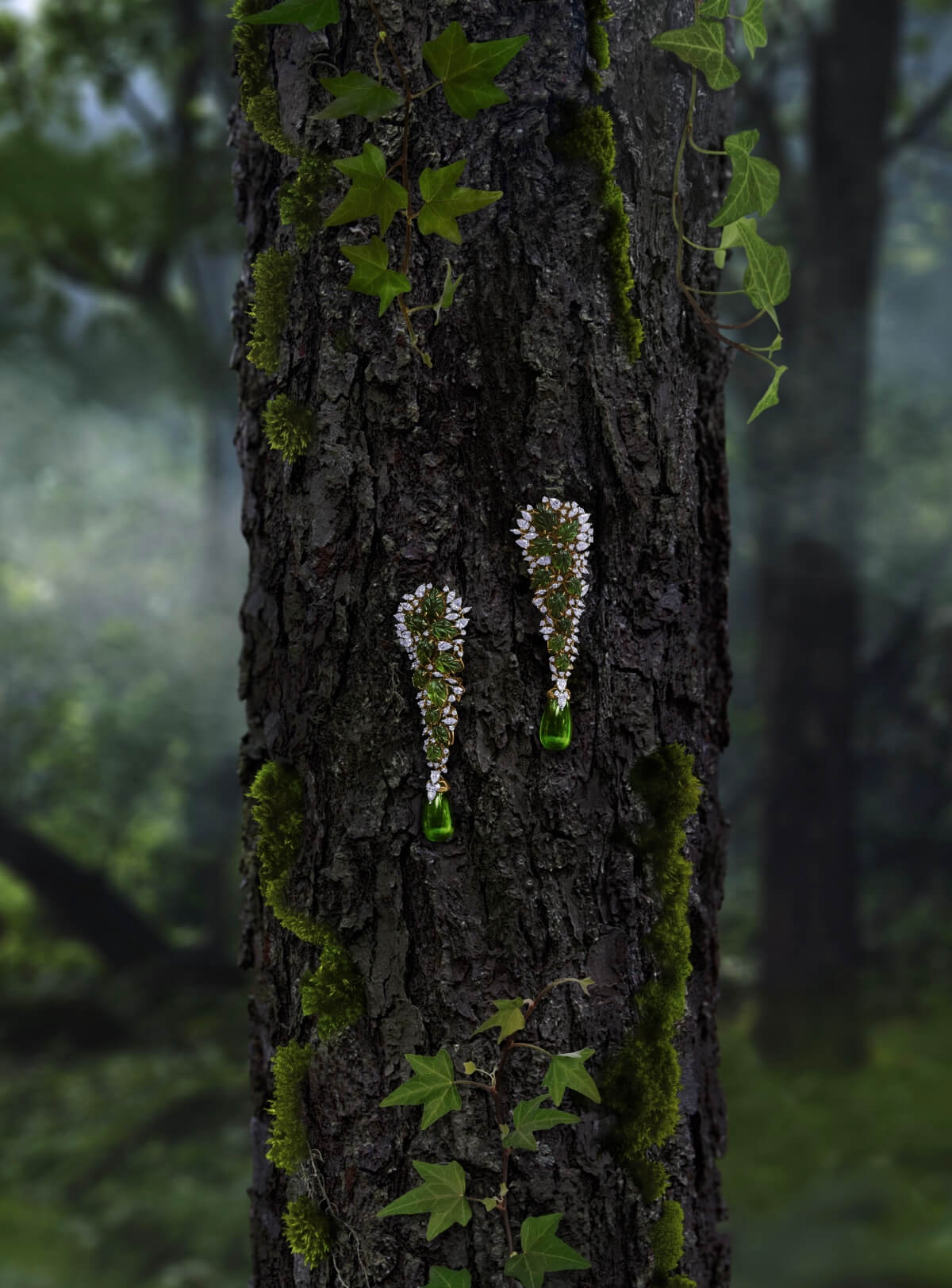The motifs range from clusters of flowers, meticulously recreated to mirror the intricacy of the original, to exotic birds - their majestic plumage perched upon pendants and fluttering from earrings. To truly bring alive the bountiful rainforest, it stands to reason that colour plays an indispensable role in the collection. The gemstones traverse the entire spectrum, including emeralds, sapphires, tanzanites, tourmalines, pink opals, rose quartz, peridots, rock crystals, iolites, turquoises and chrysoprase.